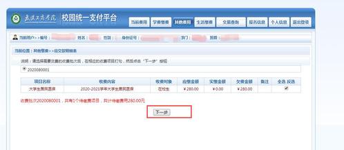 3、 缴费(如下图4、5所示在米乐mile官方网站统一支付平台缴费)。