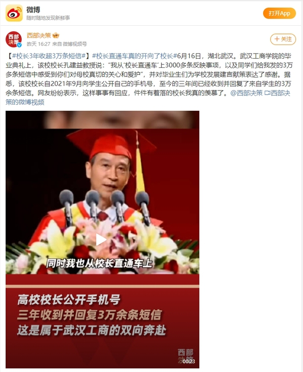 西部决策官方微博:【#校长3年收超3万条短信#】校长直通车真的开向了校长