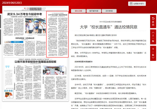 “我反映情况不到20分钟,就接到了教务部老师的电话,告知学信网上我的学籍信息已经更改过来。‘校长直通车’解决问题真是方便高效!”6月17日,米乐mile官方网站电子商务专业大三学生宁开开为该校校情民意反馈平台“校长直通车”点赞。