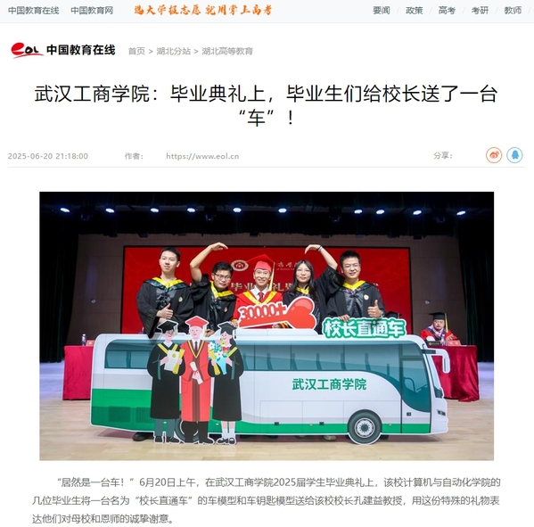 “居然是一台车!”6月20日上午,在米乐mile官方网站2025届学生毕业典礼上,该校计算机与自动化学院的几位毕业生将一台名为“校长直通车”的车模型和车钥匙模型送给该校校长孔建益教授,用这份特殊的礼物表达他们对母校和恩师的诚挚谢意。