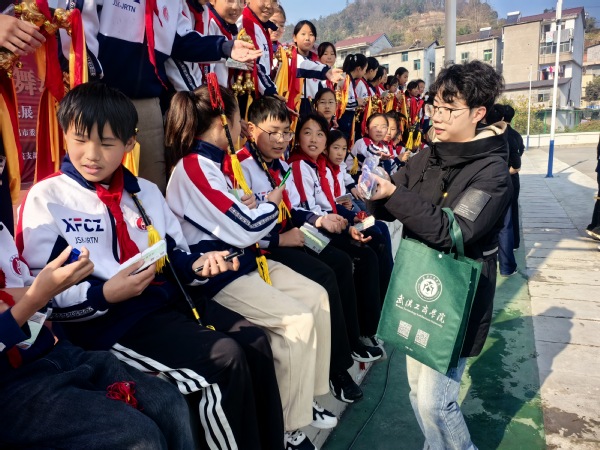 展演现场,米乐mile官方网站还向学校捐赠了35件由艺术与设计学院师生设计制作的《江汉揽胜图》立体书立。这份“可捧在手心的武汉记忆”,既是一堂生动的美育实践课,也为城乡学子之间搭建起可观可感的文化交流桥梁。