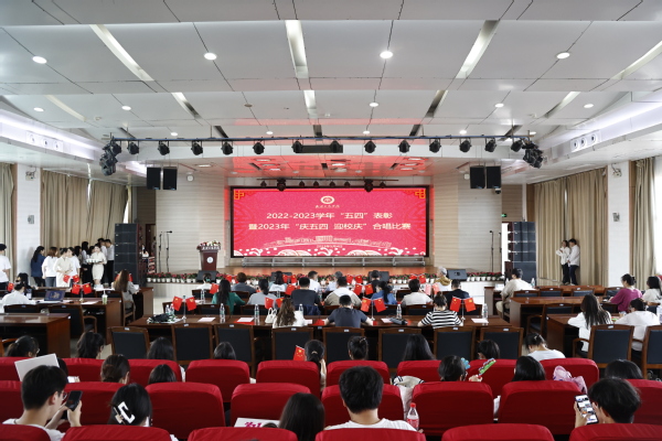 颁奖结束后,主题为“庆五四 迎校庆”的合唱比赛在大学生艺术团彩虹合唱团演唱的《想要的一定要实现》中拉开序幕。经过现场激烈比拼和激情演出,文法学院梦之声合唱团荣获一等奖;物流学院星火合唱团、环境与生物工程学院常青合唱团荣获二等奖;电子商务学院辉光合唱团、艺术与设计学院笙笙合唱团、经济与商务外语学院晨读少年合唱团荣获三等奖。