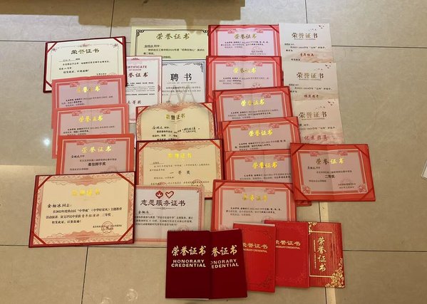 图为金栩冰所获部分荣誉证书
