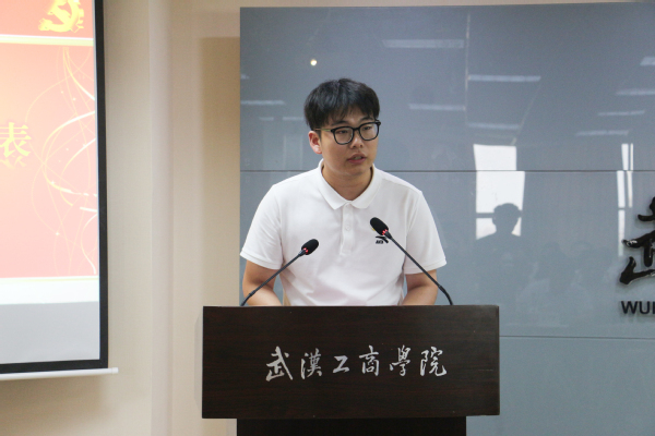 图为王靖丞同学作为“学生优秀党员”代表发言 摄影:芮雨欣
