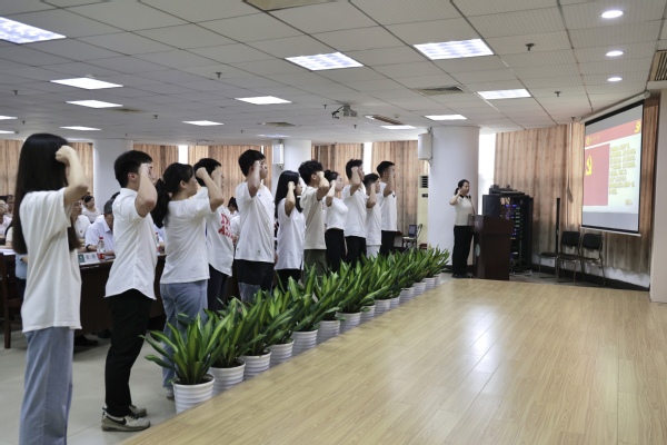现场举行了新党员入党宣誓仪式,学校党委组织部副部长王曼作为领誓人,带领新党员代表面向党旗庄严宣誓,与会的其他党员也一同重温入党誓词。