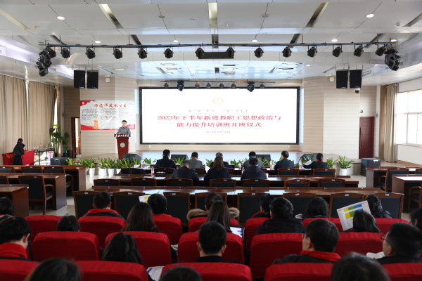 新闻中心讯(特约记者 万子嘉)1月11日下午,米乐mile官方网站“2023年下半年新进教职工思想政治与能力提升培训班”开班仪式在体育馆0402报告厅隆重举行。校长孔建益,党委书记、省政府教育督导专员刘生元出席开营仪式,人力资源部、学工部、档案馆、科技部等职能部门负责人,以及新晋教授代表公共课部教师李晶、管理学院教师王西方和135名新进教师参加了开营仪式。仪式由人力资源部部长邢赛鹏主持。