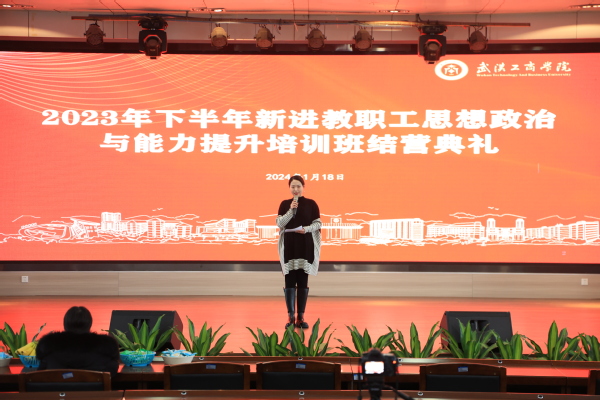 管理学院张斟作为新教师代表发言,他认为此次新教师培训是一次宝贵的学习机会,不仅可以和新教师们交流学习,也可以向优秀教师前辈们请教学习、汲取经验,期待在此次培训中收获更多的知识,补齐自身短板。