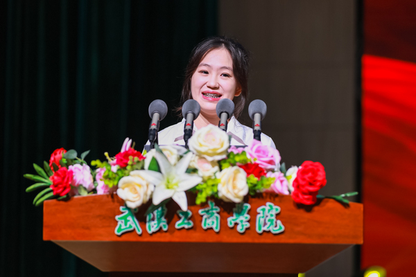 图为经济与商务外语学院2022级学生齐悦作为学生代表