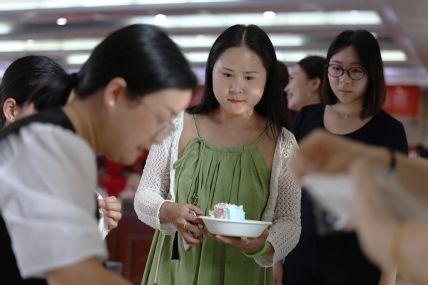 图为分发蛋糕,过集体生日 摄影:金天