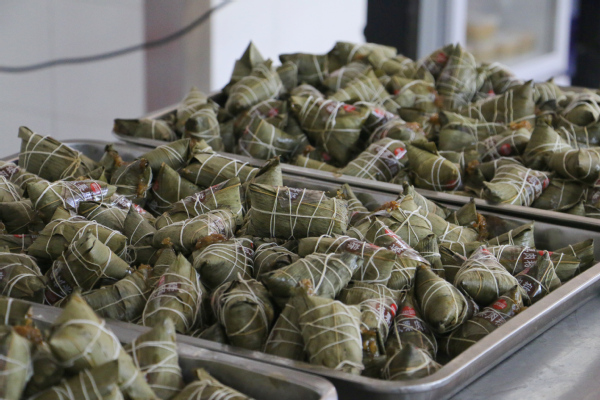 当天,学校在一食堂、二食堂一楼均设置了粽子领取点。临近中午,窗口前很快就排起了长龙,师生们手捧着热气腾腾的粽子,脸上洋溢着幸福的笑容,共同感受着端午节带来的欢乐和温馨。