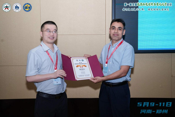 新闻中心讯(通讯员 王强 邓芳)5月9—11日,米乐mile官方网站环境与生物工程学院Ali博士受邀参加在郑州举办的第一届全国能源环境材料与催化化学会议,并作题为《基于固体还原剂的催化剂双功能位点集成:过硫酸盐高级氧化技术中高效催化剂的设计策略》的学术报告。此次会议汇聚了国内能源环境材料与催化化学领域的顶尖专家学者,共同探讨前沿技术、创新材料及绿色催化应用的最新进展。