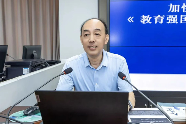 随后,全国知名教育专家、中国教育学会副会长周洪宇教授作题为《教育强国建设规划纲要解读》的首场报告,他从2035年教育强国建设的宏伟蓝图切入,结合民办高校发展痛点,细致解读了“教育——产业”融合路径,引导干部提升对高等教育政策的领悟力以及对发展趋势的敏感度。