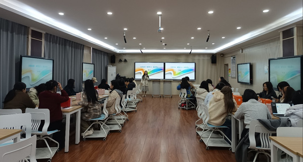 培训中,陈佳老师以专业视角深入解读情绪管理、压力调适等核心内容,用通俗易懂的语言分享科学减压技巧与心灵成长方法,层层引导女教职工关注自我、接纳自我、悦纳自我。现场互动环节丰富多样,老师们积极参与、踊跃交流,在轻松愉悦的体验中释放心理压力、舒缓身心状态,在沉浸式的互动中汲取心灵力量、收获成长感悟。