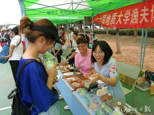 中国地质大学(武汉)逸夫博物馆带来的展品突出地质特色,工作人员讲解了各种矿石的知识。中南财经政法大学中国货币金融历史博物馆通过各种货币实物,为参观者打开一扇了解历史更迭和经济发展的生动窗口。身穿民族服装的女老师,邀请大家到中南民族大学民族学博物馆去做客。武汉理工大学艺术馆则通过视频,普及陶瓷艺术知识。