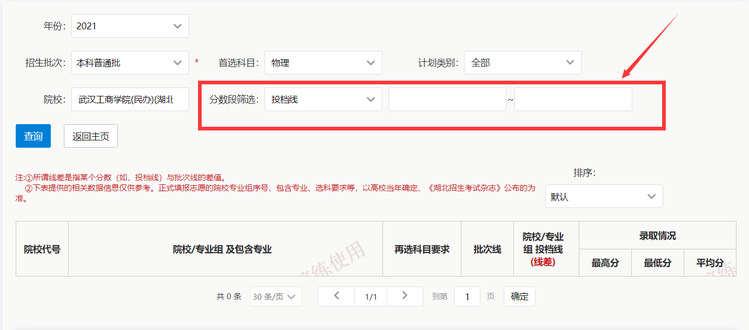 分数线默认为空,考生可以选择空,也可以选择某一范围。比如:选择为空。