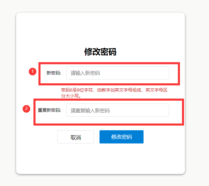 点击登录后,如果是首次登录则自动跳转到修改密码页面,两次输入密码保持一致,点击修改密码按钮,修改成功并返回登录首页,用修改的新密码重新登录。