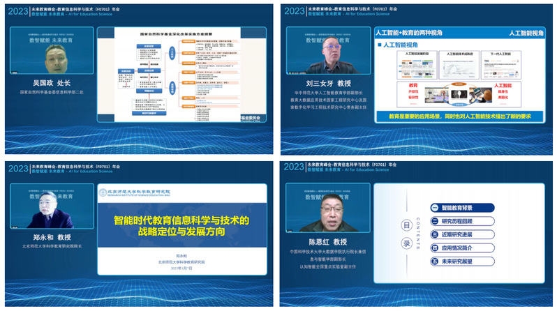 在专家报告环节,国家自然科学基金委员会信息科学部处长吴国政、北京师范大学科学教育研究院院长郑永和教授和华中师范大学人工智能教育学部副部长、教育大数据应用技术国家工程研究中心及国家数字化学习工程技术研究中心常务副主任刘三女牙教授分别深入研究了以下四个重要议题:《科学基金改革及F0701学科2022年度项目资助情况分析》《智能时代教育信息科学与技术的战略定位与发展方向》《人工智能+教育的7个基本问题》。