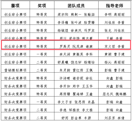 图为获奖情况一览表