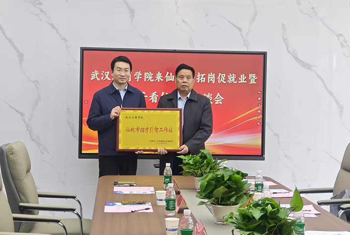 会上,双方举行“招才引智工作站”授牌仪式,并签订《校地人才合作框架协议》,根据协议,学校和仙桃市将在人才培养、实习就业、产学研合作等方面开展全方位合作,构建起校地人才共育的“直通车”。