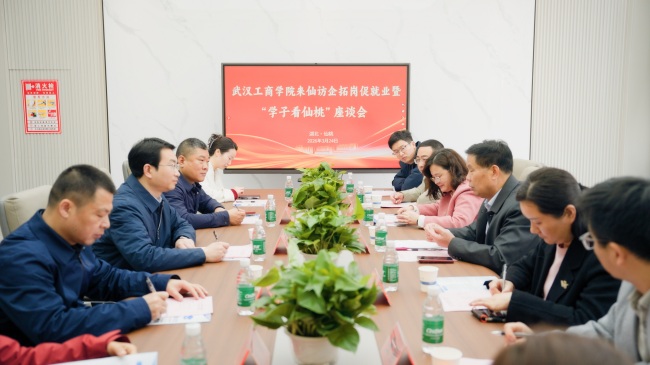 随后,校地合作座谈会在职业工装电商产业园会议室举行。仙桃市人力资源和社会保障局党组书记、局长向宇等领导,重点介绍仙桃产业发展规划、紧缺人才需求,并详细解读 “沔才卡” 等人才服务政策,以 “真金白银” 的举措吸引我院优秀毕业生扎根仙桃、就业发展
