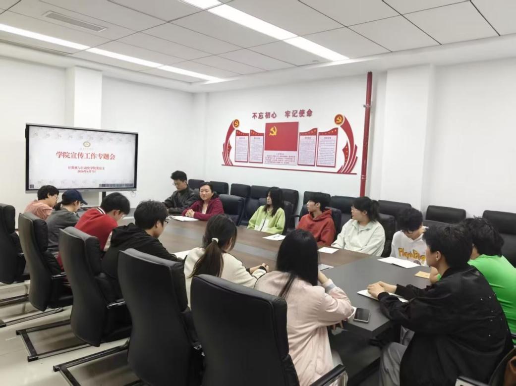 聚声浪以传薪火,炼笔力以筑新风。4月7日,计算机与自动化学院宣传工作专题会在知新楼117会议室隆重召开。党总支书记吴茜、办公室主任蔡丹、分团委书记徐曦、宣传部长吴飞翔、代理会长何浩东以及全体宣传骨干齐聚一堂,明规范、划重点、谋新篇。