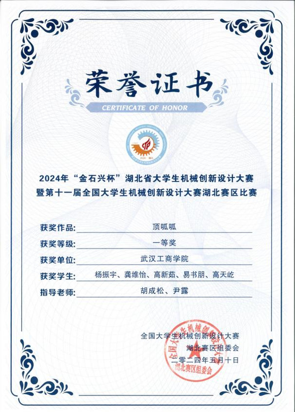 机器人工程专业学子(汪惠琳、黎韩超、朱韩鑫、钟易臻、朱旭喆)荣获