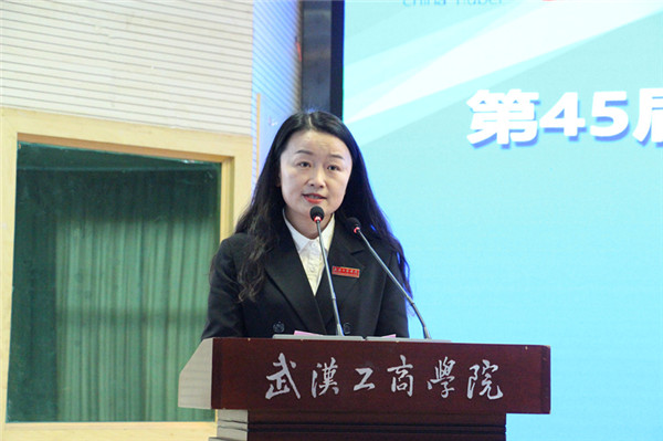 图为武汉职业技术学院周蓉教授代表裁判员宣誓 摄影:郭冰雪