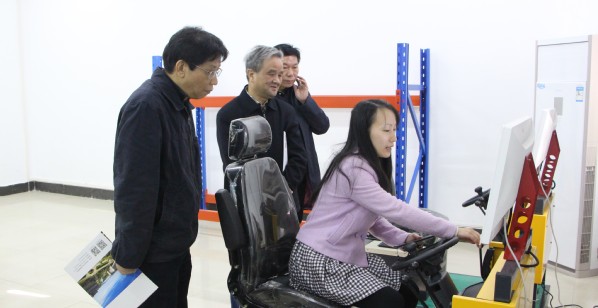 图为陈建勋院长一行观看演讲员演示 摄影:陈爱媛