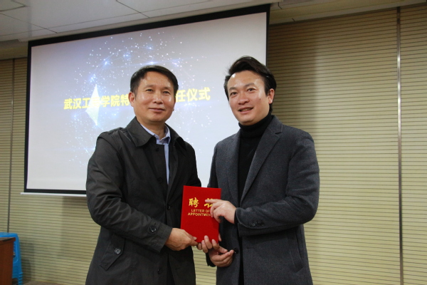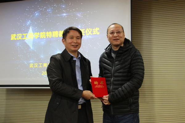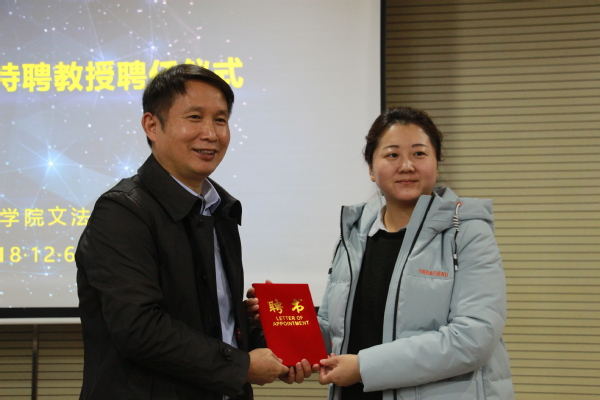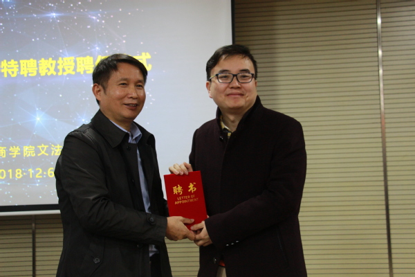 图为陈奎生校长颁发特聘教授聘书 摄影:谭艳