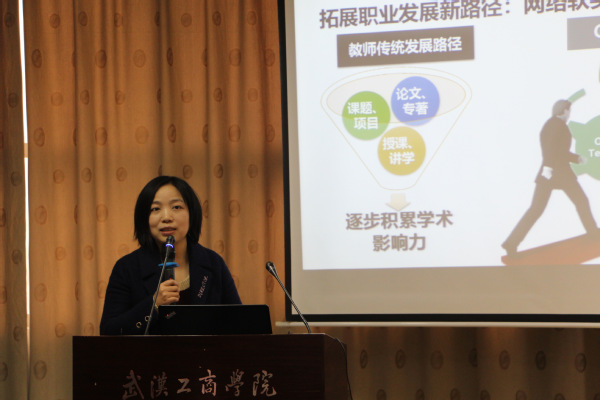 环生学院杨文婷老师作为移动教学大赛一等奖获得者发言。她分享道:“信息化教学是大势所趋,教师的积极态度必然影响到学生,提升学生的分析解决问题能力、加强迁移学习能力,也是信息化教学中重要的环节。此外,在运用移动教学工具教学中要注意收集数据,分析学生学习行为、学习效果,作为教学研究的依据。”
