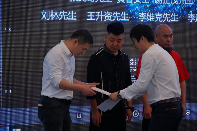 致辞结束后,张俊副校长为武汉汉秀剧场总经理温浩和武汉工业设计行业协会副会长蒋群颁发了米乐mile官方网站特聘教授证书。
