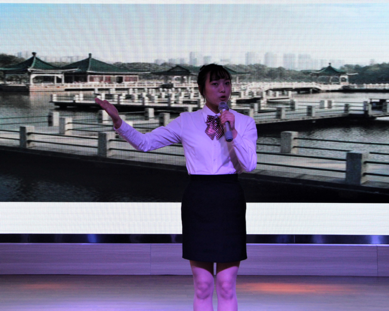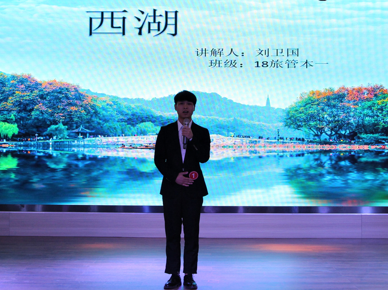 比赛中,选手们各展其能,生动形象地讲解了西湖、黄鹤楼、长江三峡等诸多景点,同时充分发挥各自的才艺特长,展现了当代大学生导游的智慧和魅力,赢得了在场嘉宾和评委老师的热烈掌声。