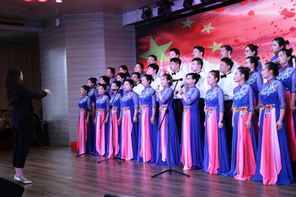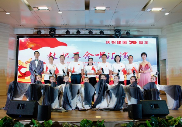 合唱汇演由公共课部朱威老师和国际教育学院张青老师主持。学校各单位13支代表队依次上台表演,满怀激情的歌颂伟大祖国、唱响时代旋律。《歌唱祖国》《我和我的祖国》《走进新时代》《东方之珠》《我的祖国》《军港之夜》《映山红》《祖国不会忘记》《走向复兴》《我的中国心》《我爱你中国》《闪闪红星》……一首首耳熟能详的爱国歌曲在舞台上唱响,串联起一部波澜壮阔的新中国史,传递着武工商人对祖国的深情挚爱和美好祝福。在校工会带来的《在水一方》舞蹈表演结束后,合唱汇演圆满落下帷幕,校领导集体上台合影留念。