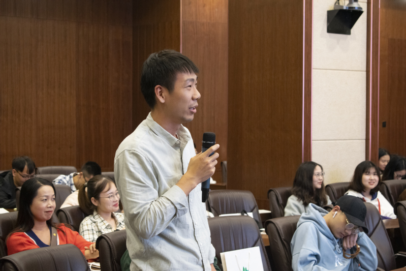 图为余宏强讲师正在与学生交流互动 摄影:谭津坪