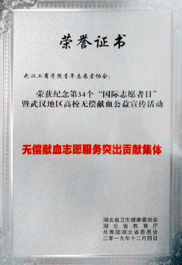 青年志愿者协会的负责人郭学东还告诉记者,目前学校志愿者注册人数达到2143人次,据不完全统计,累计开展过各类志愿服务多达1300多次,累计服务时长达67300多小时。本次能获评湖北省无偿献血志愿服务突出贡献集体离不开全体青协人的共同努力,以后会继续努力,遵循“服务社会,完善自我”的宗旨,秉持“以校园为依托,诚心为他人,热心为社会”的服务理念,积极践行奉献、有爱、互助、进步的志愿者精神。