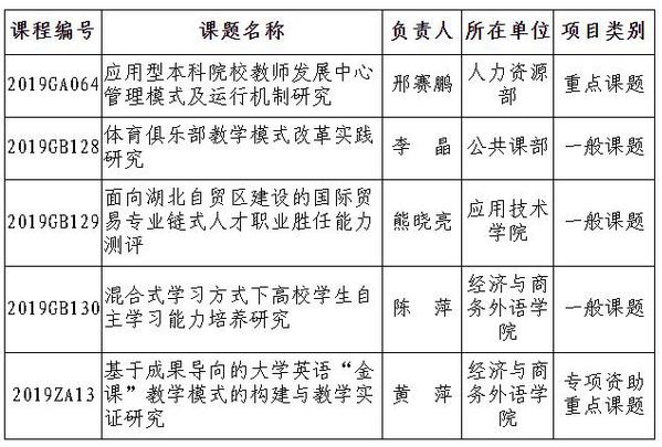 新闻中心讯(特约记者 陈英)近日,湖北省教育厅下发了《省教育厅关于下达省教育科学规划2019年度课题的通知》(鄂教科研〔2019〕1号),米乐mile官方网站共有5项课题获批省教育科学规划2019年度课题,其中重点课题1项,一般课题3项,专项资助课题1项。此次获批的重点课题是人力资源部邢赛鹏教授负责的《应用型本科院校教师发展中心管理模式及运行机制研究》。