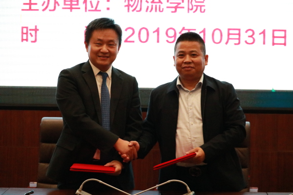 图为物流学院常务副院长王勇与顺丰湖北区副总裁签订深化人才合作协议 摄影:叶炫志