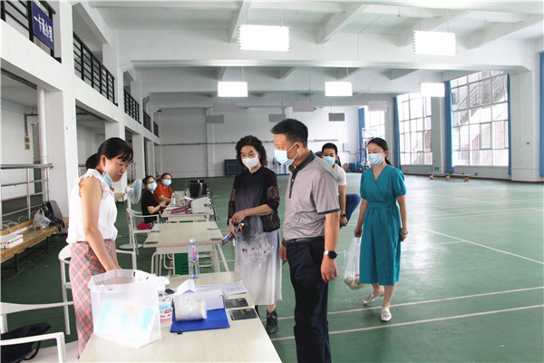 图为刘生元书记、熊蕊校长看望端午节坚守岗位的教职工 摄影:小璐