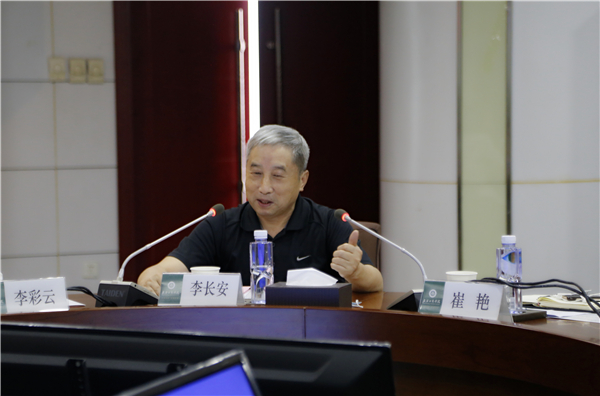 李长安顾问对学校的发展建言献策:找准学校定位,充分发挥校企合作产教融合和环境工程专业特色优势,在环境工程、环境科学、环境法学、环境文科等学科的建设方面下功夫,打造环境生态文明、绿色校园的品牌与特色。