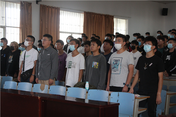图为党委书记刘生元带领同学宣誓 摄影:冯哲昊