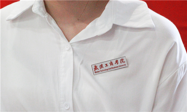 开学典礼现场,全体校领导为新生代表佩戴校徽。