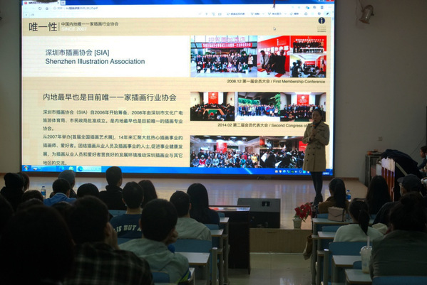 朱会长生动有趣的讲解引起了大家的广泛关注,讲座后,同学们纷纷就专业学习中遇到的困惑和疑问向她提问,她一一做出了专业细致的解答。大家纷纷表示,通过本次讲座对插画专业的认识及发展前景有了更加清晰准确的理解,得到了很大的启发。