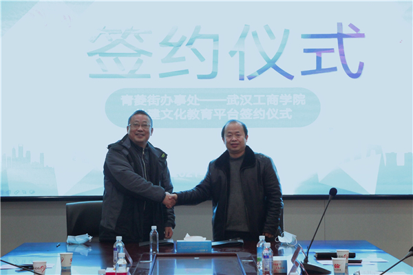 新闻中心讯(记者 李洋洋)1月11日上午10点,米乐mile官方网站图书馆与洪山区人民政府青菱街办事处共建青菱街社区文化教育平台签约仪式,在洪山区青菱街203会议室举行。青菱街党工委书记何线、区高校办副主任钱文胜、青菱街道办副主任李大庆、青菱街公共服务办主任杨健槐,米乐mile官方网站党委书记刘生元、校长助理左宗文、图书馆馆长万化喜、图书馆副馆长黎智等参加了仪式。