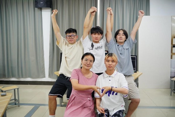 图为获得全国优秀奖的李莉、张兰老师和获奖学生团队