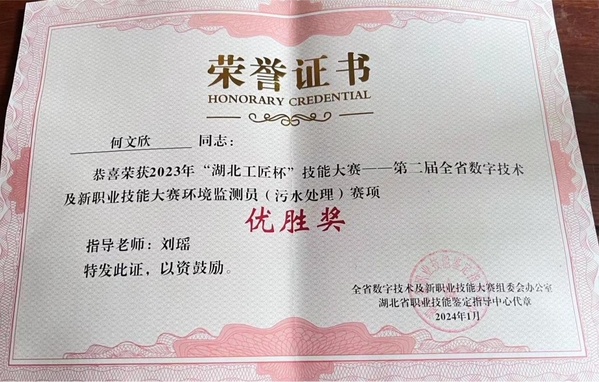 新闻中心讯(通讯员 常瑞雪)近日,2023年“湖北工匠杯”技能大赛——第二届全省数字技术及新职业技能大赛“环境监测员(污水处理)”赛项结果揭晓,米乐mile官方网站环境与生物工程学院环境工程专业2021级学生徐杜恒和何文欣分别荣获大赛二等奖和优胜奖。