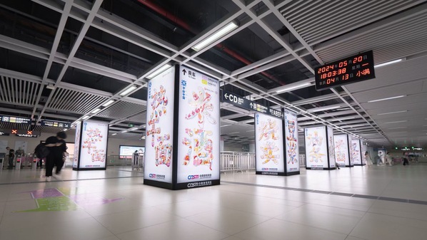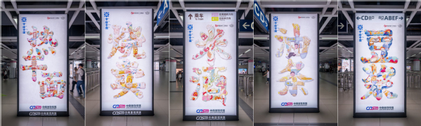 图为“武汉过早”系列字绘作品亮相武汉地铁站