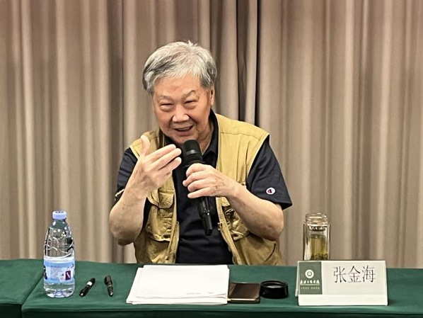 图为文法学院院长张金海教授在研讨会上做主旨演讲