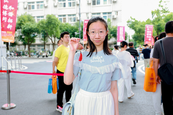 家住蔡甸区的考生家长陈城女士一进校门,就收到了志愿者们递过来的粽子和香囊,这一举动让她直呼暖心,“以前就听别人说这个学校打造‘最温暖大学’,果然名不虚传。”