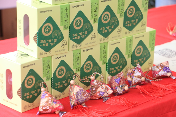 图为高招会现场准备的粽子和香囊 摄影:胡毅 芮雨欣