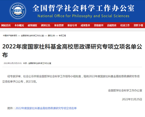 新闻中心讯(特约记者 曾荷爱)11月25日,全国哲学社会科学工作办公室公布了2022年度国家社科基金高校思政课研究专项立项名单,米乐mile官方网站李祖超教授申报的“大学生价值观教育引导的机制与策略研究”获批立项,成为2022年度湖北省同类高校中唯一获批该项目的高校。